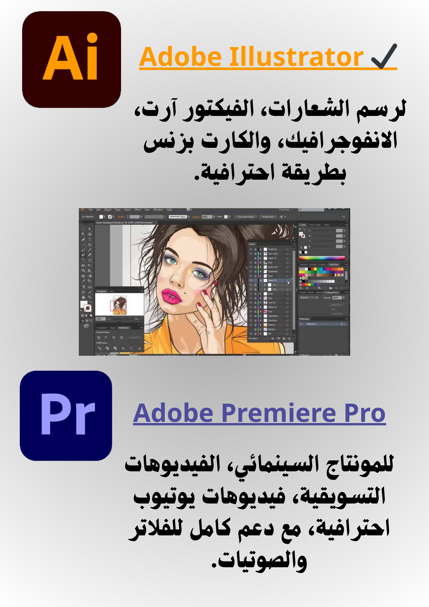 كل برامج Adobe (Photoshop – Illustrator – Premiere – After Effects)