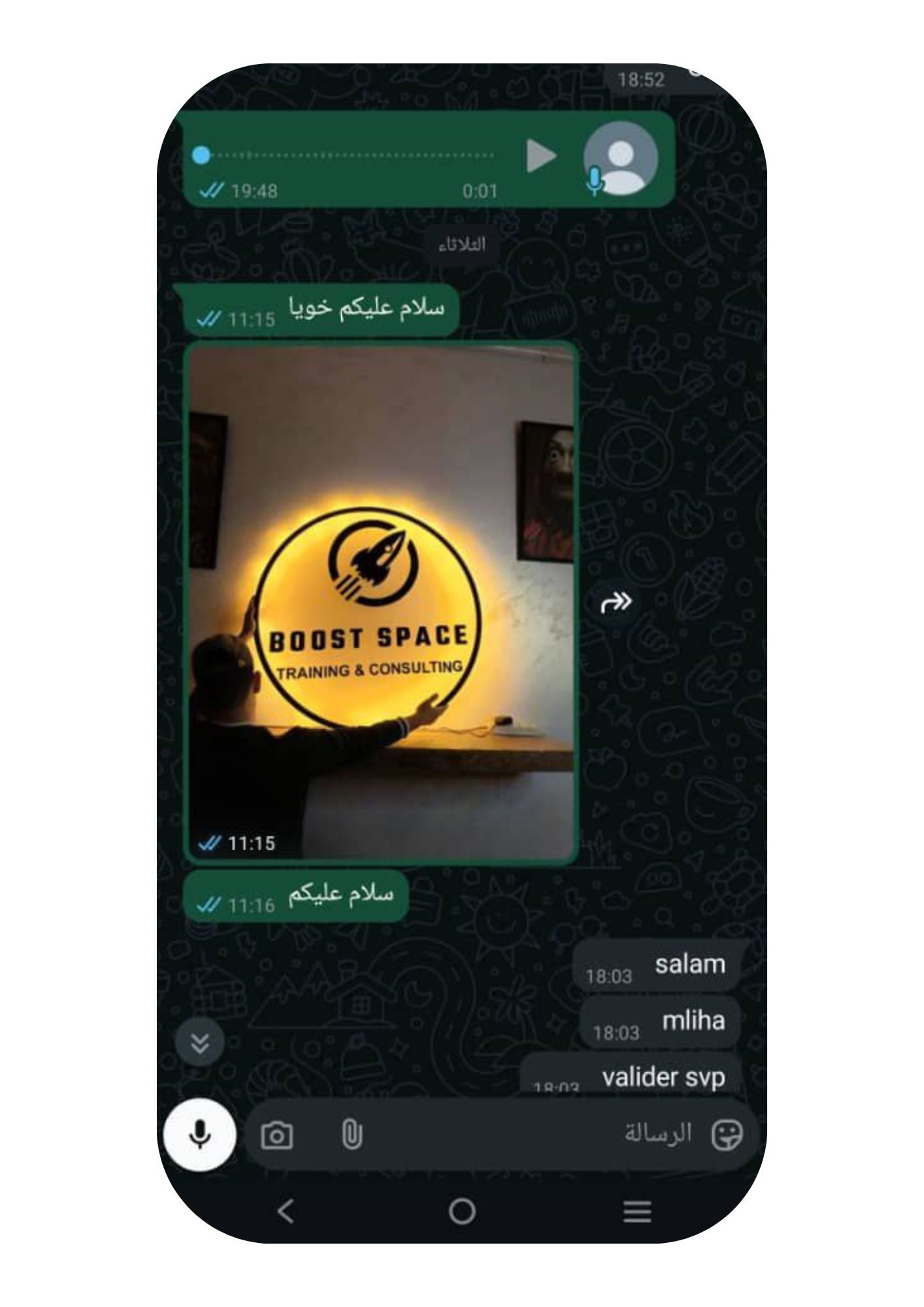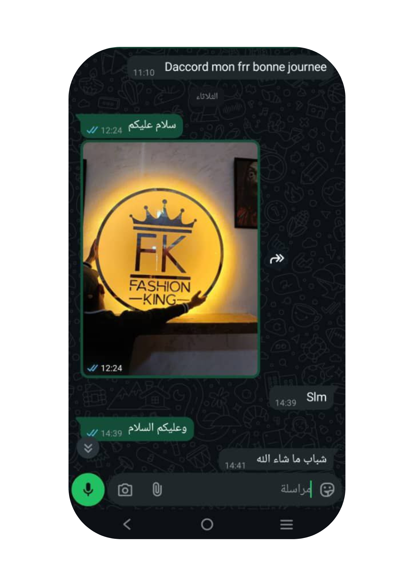 أولا إختر المقاس وإملاء إستمارة الطلب سوف نتصل بك عبر الهاتف لتأكيد الطلب ثم يتواصل معك فريق التصميم عبر الواتساب لتزويدهم بشعارك الخاص او إسم المحل